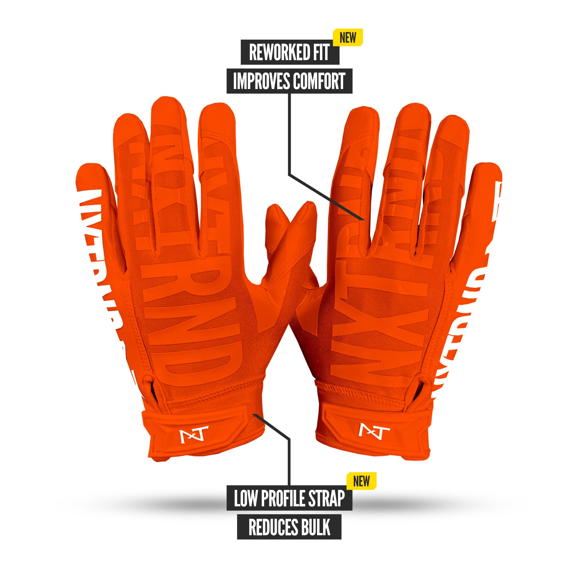 Play like the pros with NXTRND G1 Pro® football gloves: reworked fit. shorter finger caps for better ball feel. and updated stitching to reduce bulk.