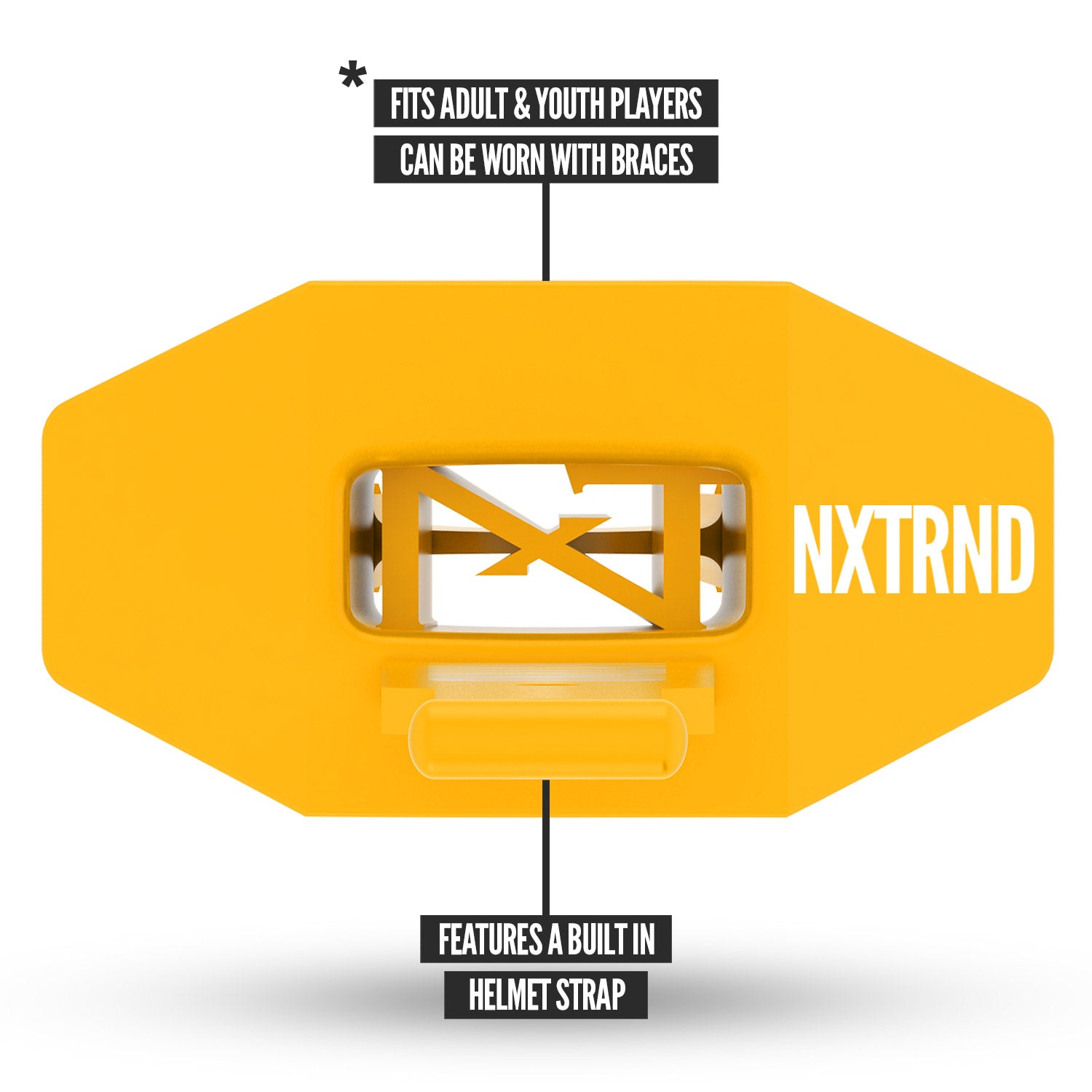 Introducing the Nxtrnd Two® Mouthguard. Featuring a permanent wide silicone strap and comfortable X-pattern bite pads.